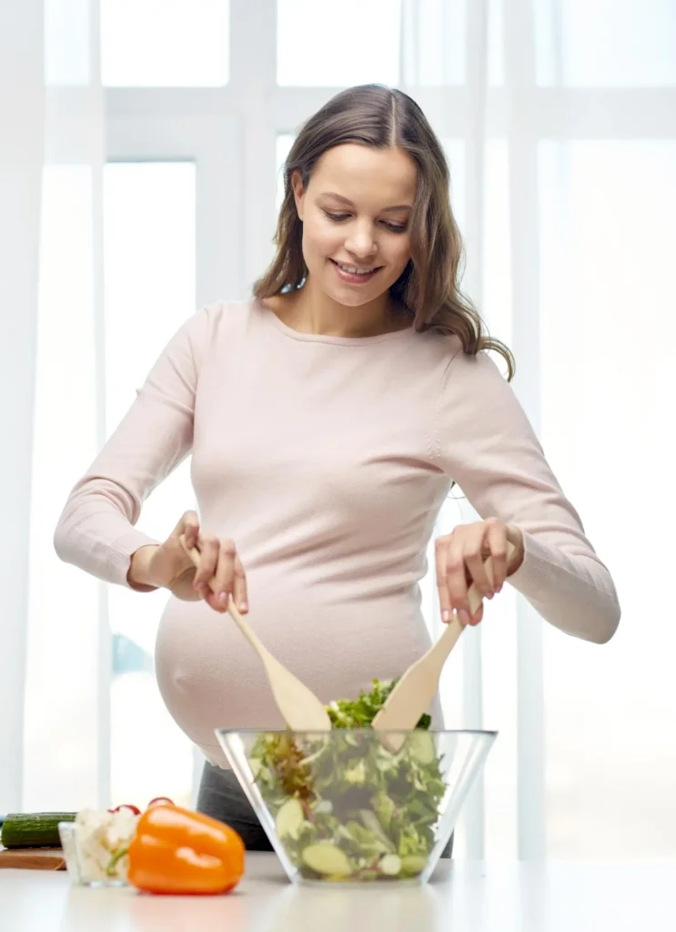 Mantieniti idratata e mantieni una dieta equilibrata ricca di frutta, verdura, cereali integrali e proteine per supportare sia la tua salute che lo sviluppo del tuo bambino.